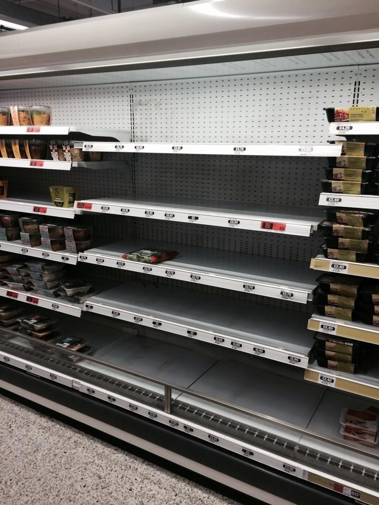 Colin Appleby, actor, tomóuna fotografía de un estamte vacío, lo que provocó la indignación de algunos usuarios de Twitter y los llevó a señalar que muchos de los productos retirados de los estantes del local son de Polonia o de Gran Bretaña.
