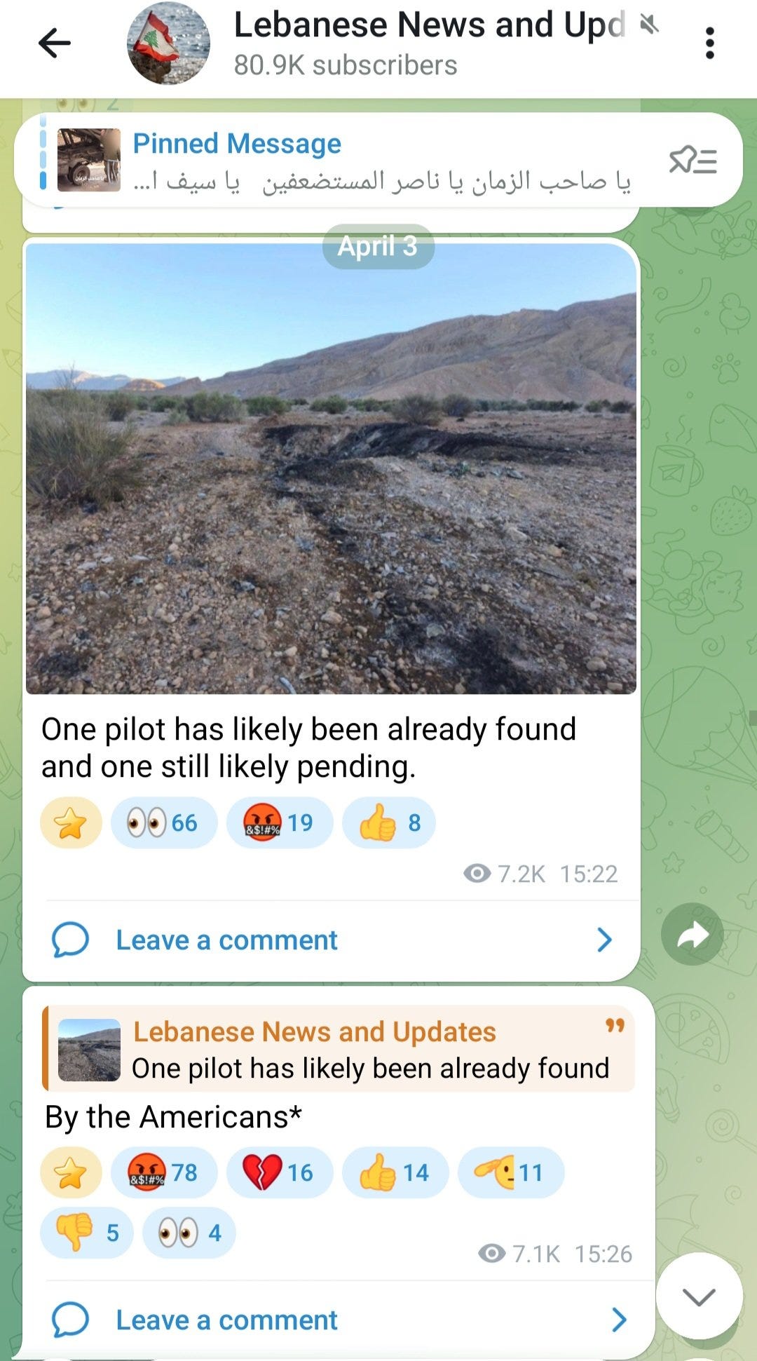 Casi tres horas antes que yo lo informara, la historia estaba circulando en canales noticiosos de Telegram—en este caso, un canal pro-Hezbola. La hora registrada en la captura de pantalla es hora israelí: 15:22. Mi publicación salió a las 18:20.