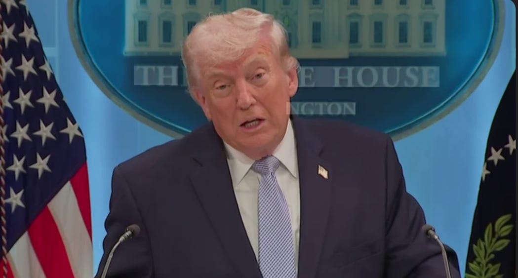 Trump prometiendo encontrar y castigar a la persona responsable por la filtración en la sala de prensa de la Casa Blanca anoche. (Screenshot used in accordance with Section 27a of the Copyright Law)