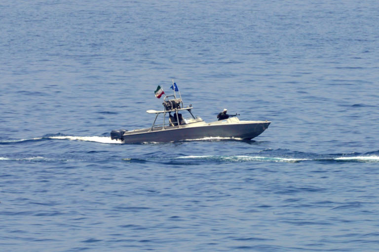 Un cañonero del Cuerpo de la Guardia Revolucionaria Islámica en el Estrecho de Ormuz en mayo del 2023.© Jon Gambrell/AP