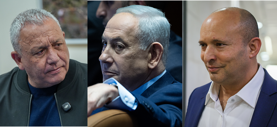 Gadi Eisenkot, Benjamin Netanyahu and Naftali Bennet. (Jonathan Shaul/Ayal Margolin/Yonatan Sindel/Flash90)